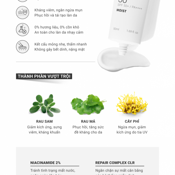◾️ An toàn cho da mụn, da nhạy cảm